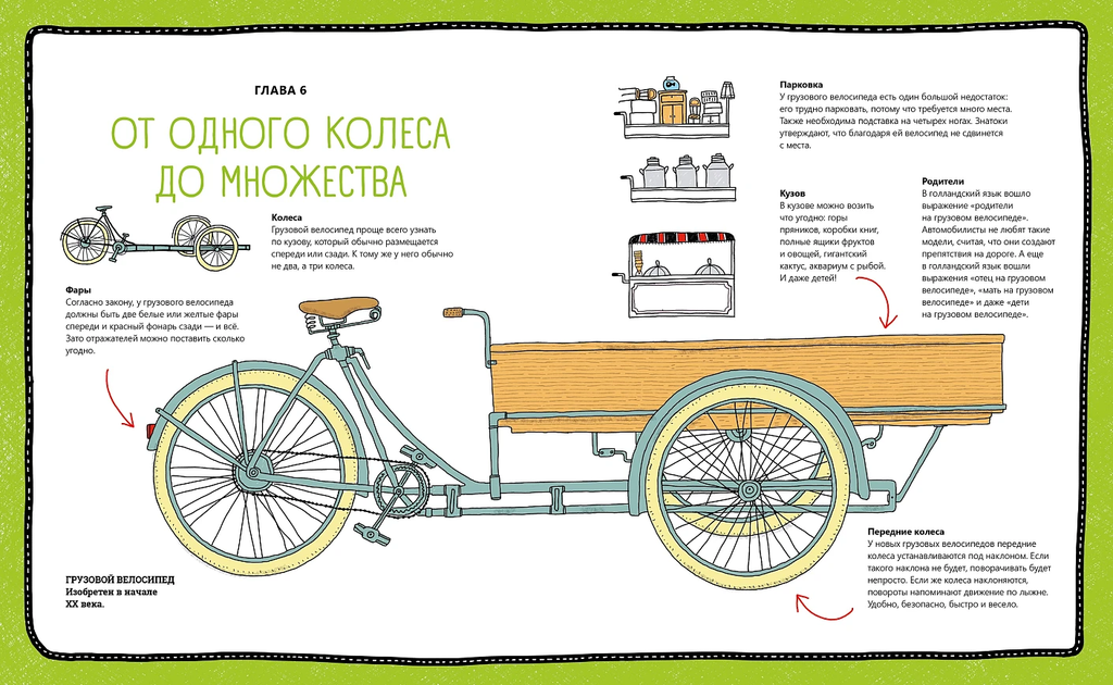 Это по-настоящему большая, красочная, подробная, смешная и увлекательная книга велосипедов, которая подойдет заядлым и начинающим велосипедистам.