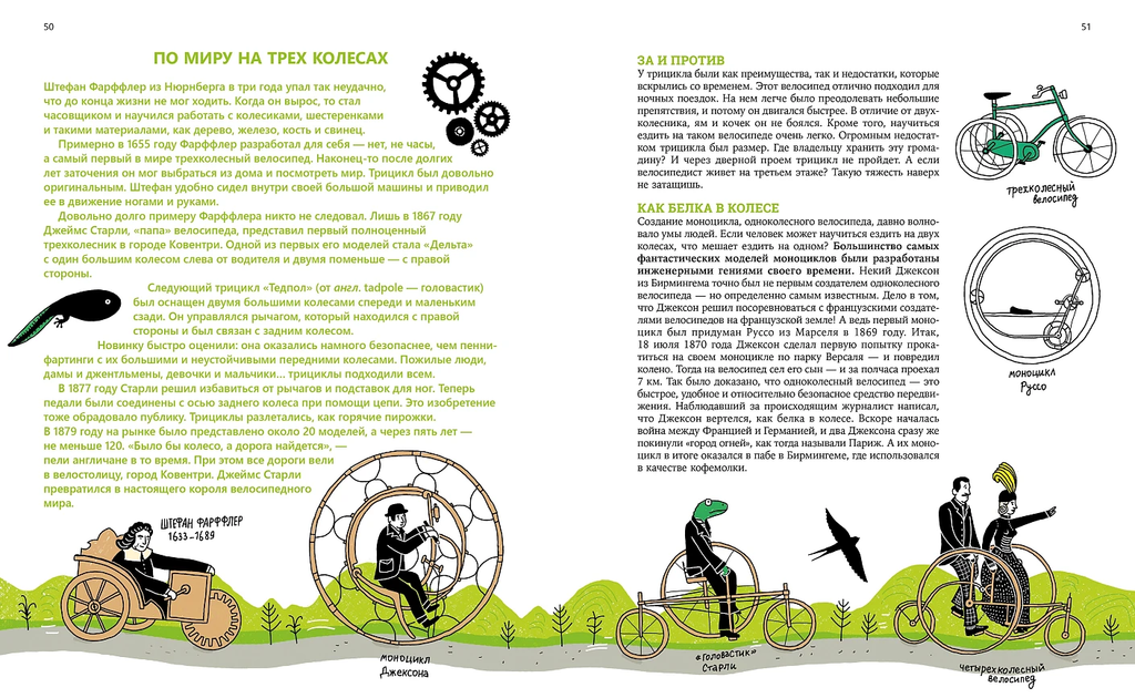 Создатели этой книги уверены, что велосипед — лучшее изобретение человечества. И они готовы ответить за свои слова, потому что написали об этом удивительном транспортном средстве целую книгу. В ней вы найдете о велосипедах все и даже немного больше. Как появились первые модели и как они менялись, почему велосипедистов отправляли прямиком в ад, что «железный конь» успел претерпеть за свою историю и как ему удалось выстоять и триумфально вернуться в нашу жизнь, выдержав конкуренцию с автомобилем.