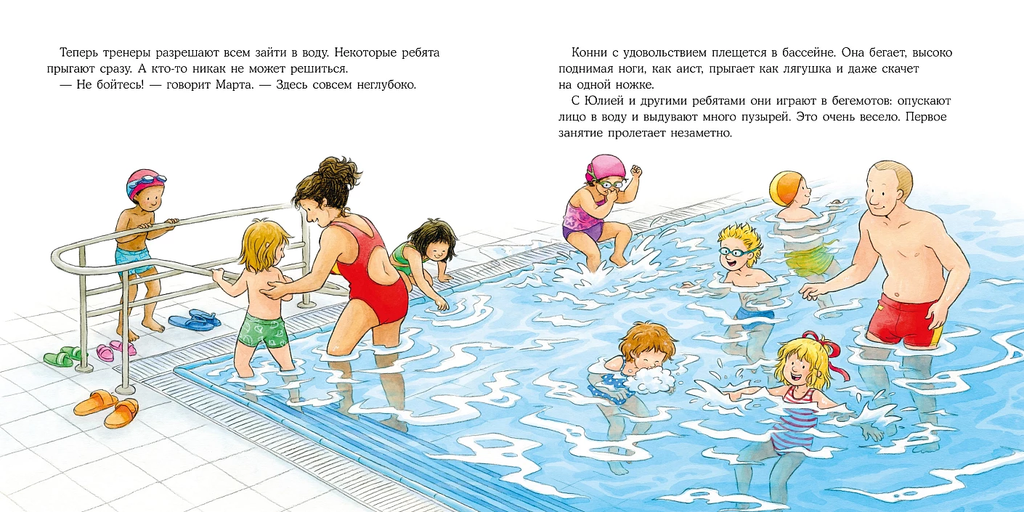 - «Конни идёт в бассейн» — поможет преодолеть страх воды.