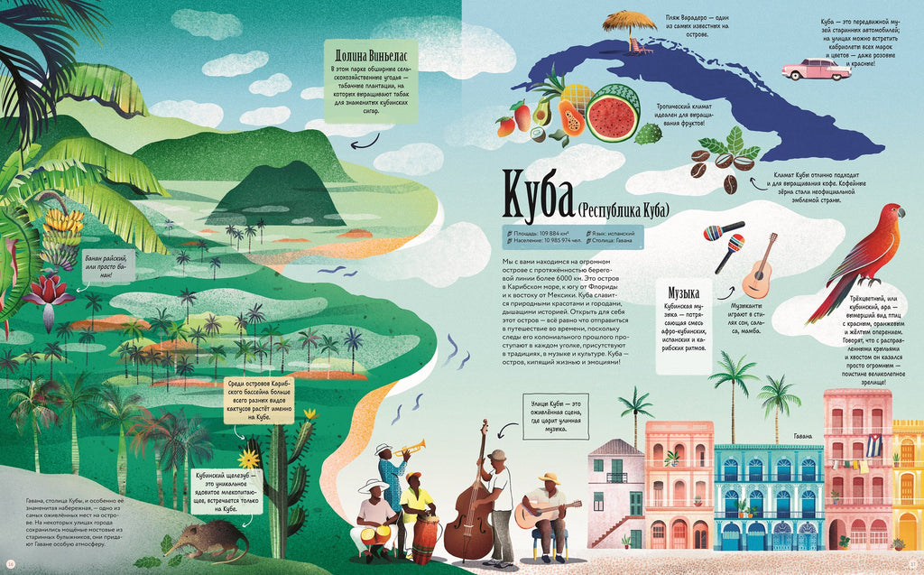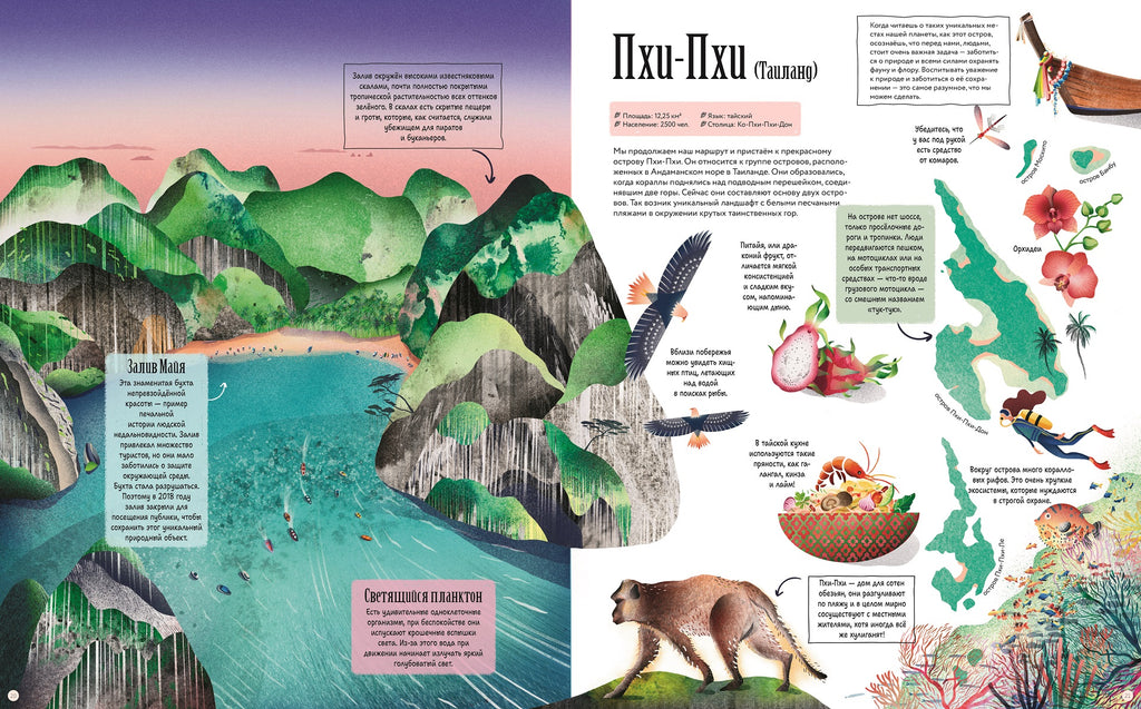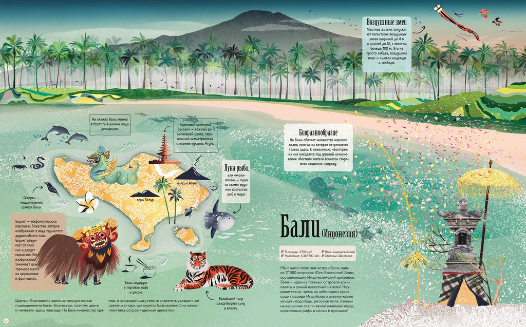 Нас ждут уникальные памятники природы, пейзажи и ландшафты: альпийские луга, белоснежные пляжи, атоллы, пещеры-тоннели, виноградники на склонах вулканов… Мы полюбуемся сакурами в цвету, попробуем блюда национальной кухни, пройдём удивительными пешеходными маршрутами, прокатимся на гондоле и тук-туке, займёмся сёрфингом, послушаем уличных музыкантов — и всё это в одной книге!