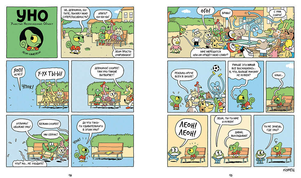 И когда он идет в новую школу, то сразу становится всеобщим любимчиком, потому что даже скучный урок теперь превращается в приключение. Но, похоже, новичку рады не все... ведь теперь никто не замечает главную звезду школы — Леона-хамелеона! И он вовсе не намерен оставаться в тени!