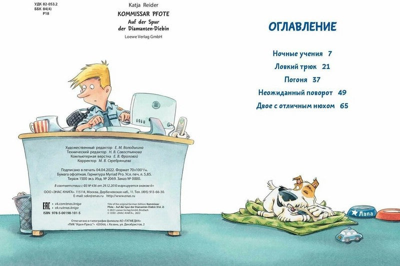Катя Райдер – автор более ста пятидесяти детских и юношеских книг, которые переведены на многие языки мира. Она очень любит собак. У неё дома живёт пёс Польди, который тоже мечтает стать настоящим полицейским. Дирк Хенниг – известный иллюстратор. У него тоже есть четвероногий друг по кличке Пико. Именно он вдохновил художника на создание образа комиссара Лапы.