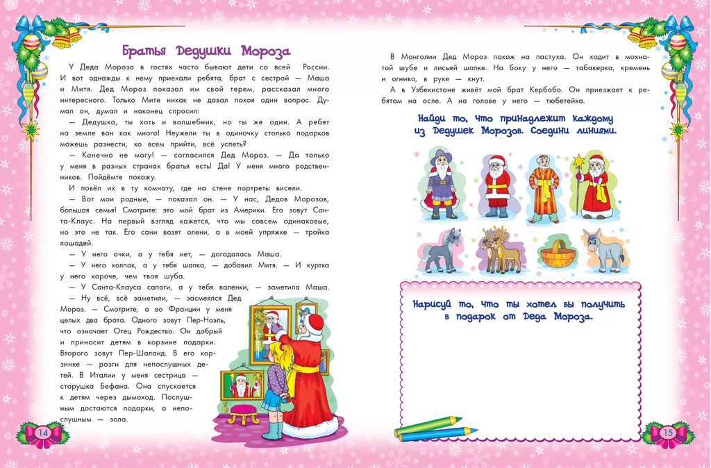 Откуда берётся снег? Какие бывают снежинки? Как зовут братьев Деда Мороза? Как на Новый год получить желанный подарок? Столько всего хотят узнать маленькие почемучки! В этой книге найдутся простые и понятные ответы на все зимние вопросы. Сказки дополнены интересными заданиями, идеями поделок из бумаги, простыми рецептами для праздничного стола, весёлыми играми и зимними стихотворениями.