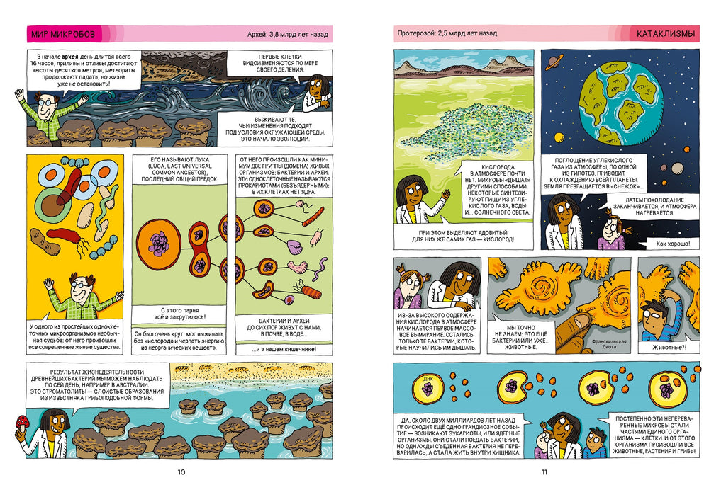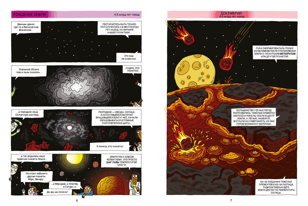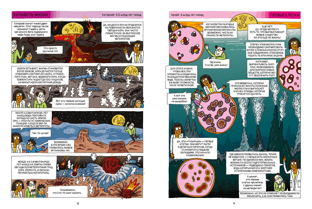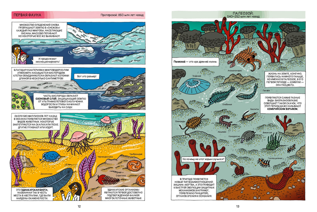 Самая удивительная история длиной в четыре миллиарда лет — это история жизни на Земле. Как из раскалённого шара наша планета превратилась в цветущий дом для миллиона видов? Какие катаклизмы и метаморфозы привели к появлению самых разных растений и животных? Этот комикс расскажет вам о самых важных поворотах эволюции. Вы узнаете о предке-супергерое, который мог выживать без кислорода и черпать энергию из неорганических веществ, о том, как яйцо в скорлупе изменило ход истории и почему потепление столь же опасно для фауны, как и ледниковые периоды. Откройте для себя многоликий мир рыб, растений, динозавров, птиц и млекопитающих — бесчисленных участников великой саги эволюции!