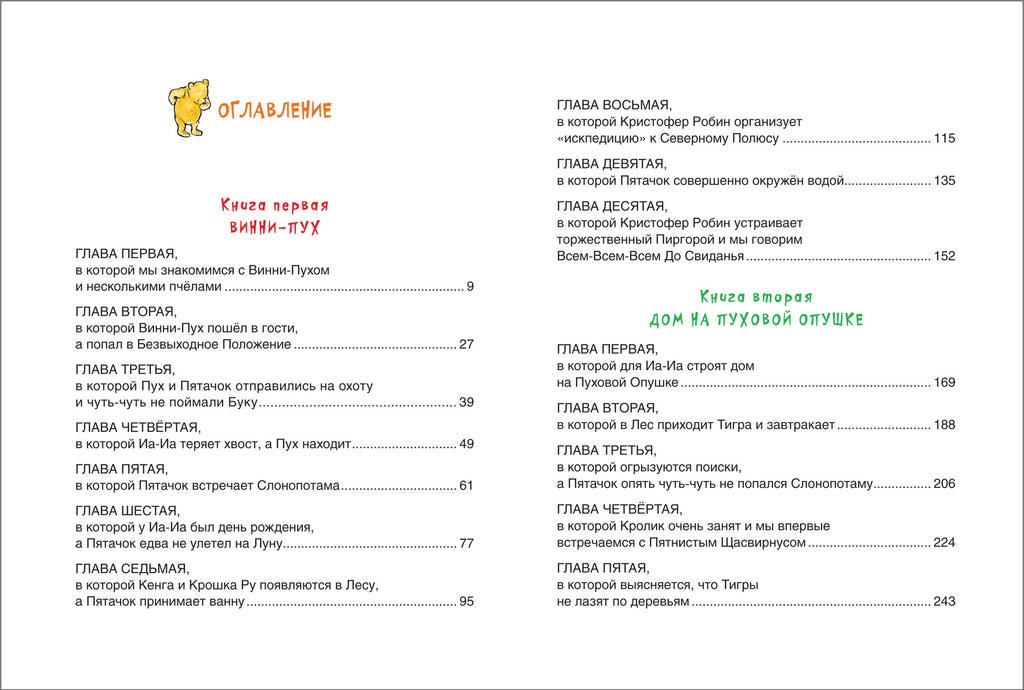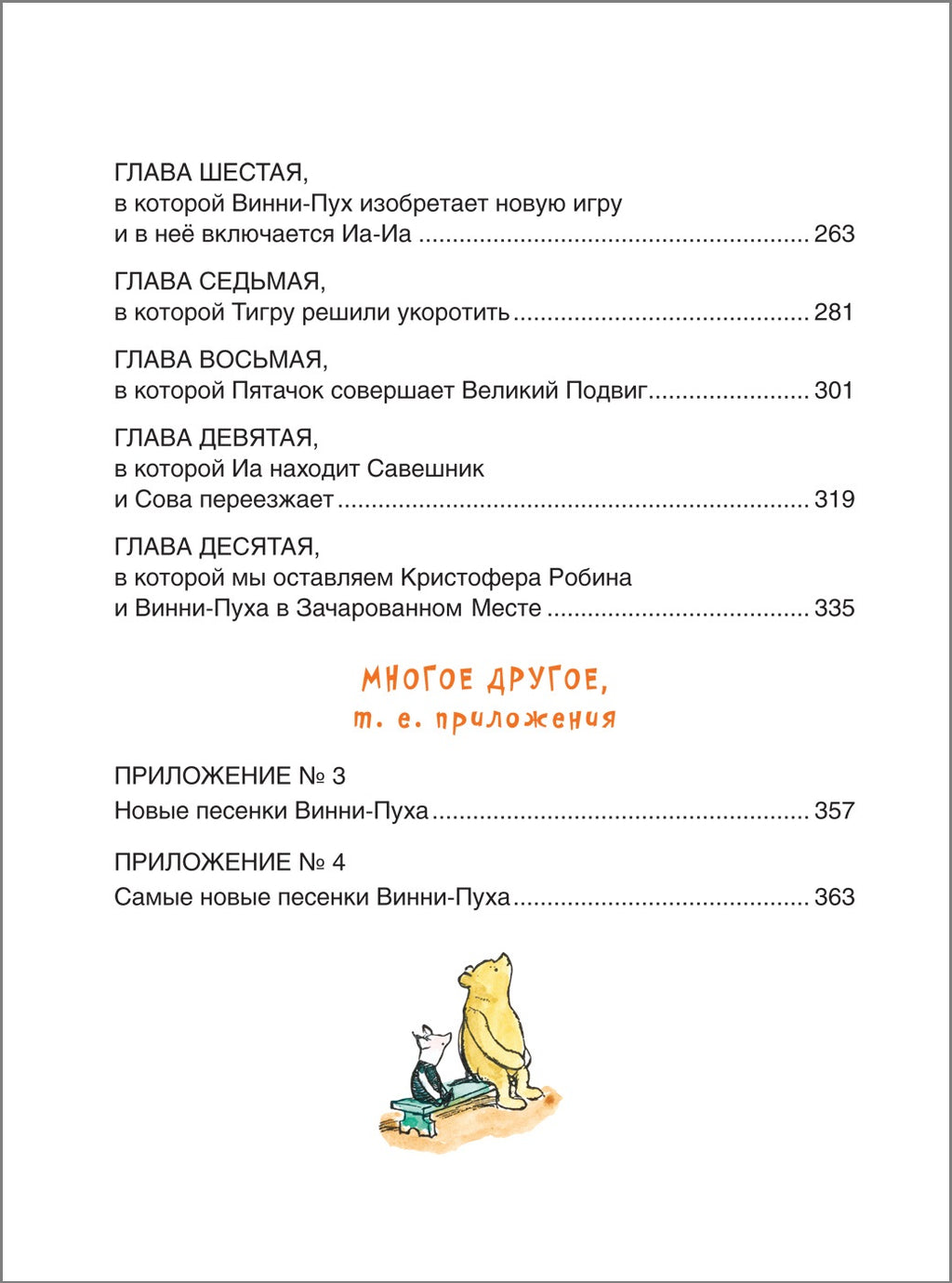 В сборник вошли две книги историй про веселого, никогда не унывающего медвежонка и его друзей: мальчика Кристофера Робина, поросенка Пятачка, Кролика, ослика Иа-Иа и многих других: «Винни-Пух» и «Дом на Пуховой Опушке». Придумал их замечательный английский писатель Алан Милн, а иллюстрации нарисовал знаменитый художник Эрнест Хауард Шепард. На русском языке истории рассказал поэт и переводчик Борис Заходер.