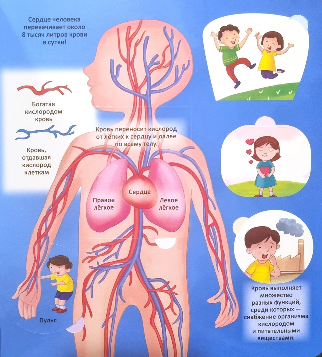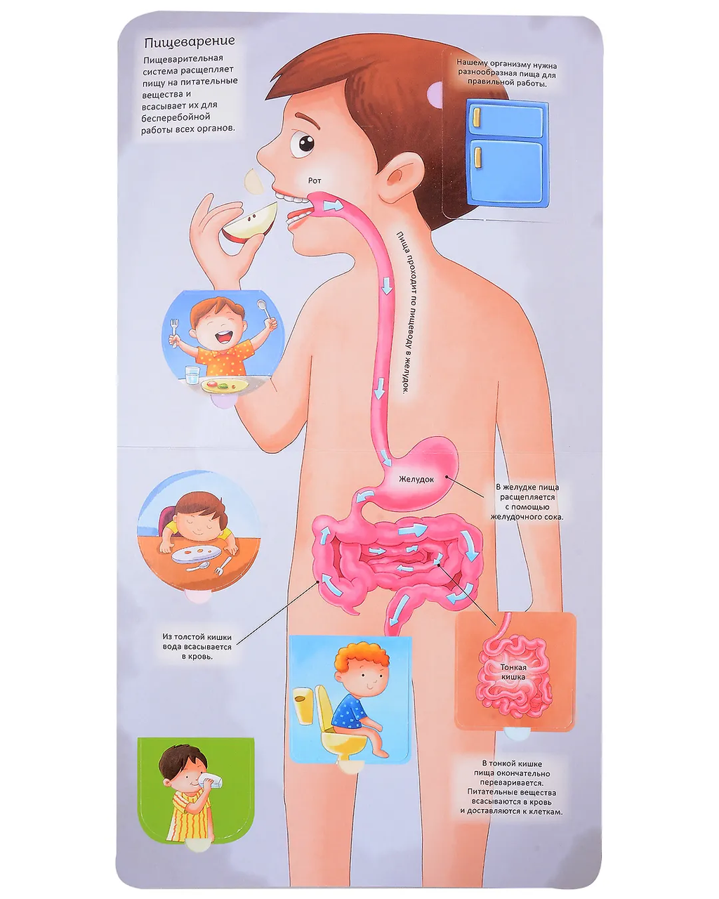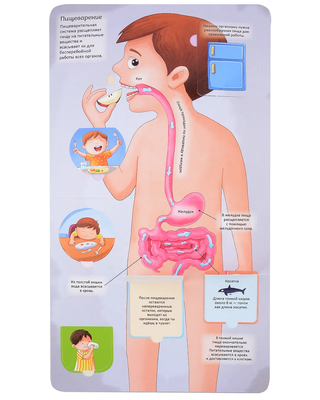 Красочная книга на картоне для малышей от 3-х лет содержит 7 разворотов и множество окошек с дополнительным сюжетом и познавательными фактами. Эта первая энциклопедия познакомит ребенка с системами и органами тела человека, подскажет как заботиться о своем здоровье, поможет в игровой форме развить внимание, память, мышление и мелкую моторику.