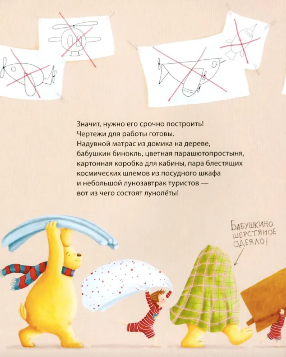 Неразлучные друзья отправляются на поиски уютного места для сна. Они даже на Луну готовы полететь, даже лунолёт построить, только бы быть вдвоём. Чем закончится это путешествие, вы узнаете из этой книжки.