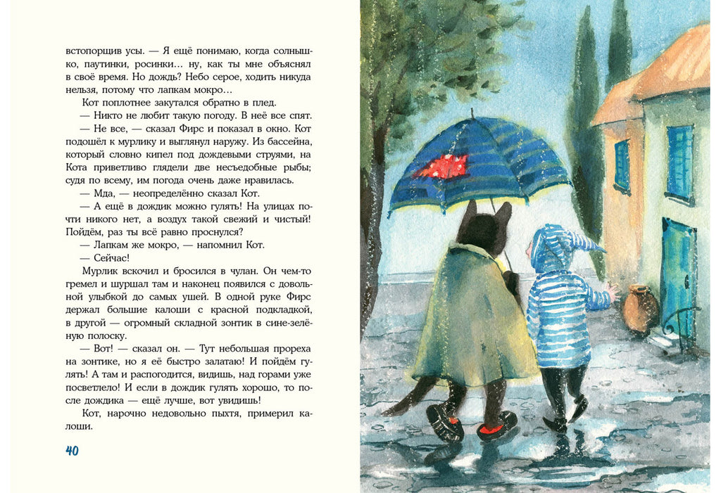 Мурлик Фирс очень хотел найти своего кота, чтобы заботиться о нём, ведь мурлики - такие милые и добрые существа! Наконец, после долгих поисков, ему повезло - да вот только кот его оказался мрачным и неприветливым? Но со временем Фирс понял, что первое впечатление обманчиво, и их с Котом знакомство переросло в крепкую дружбу. Ведь на самом деле Кот чувствовал себя одиноким и ему очень нужен был кто-то, с кем можно вместе гулять под дождём, смотреть на море, шутить, улыбаться и просто мечтать?