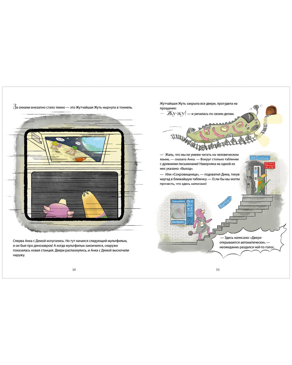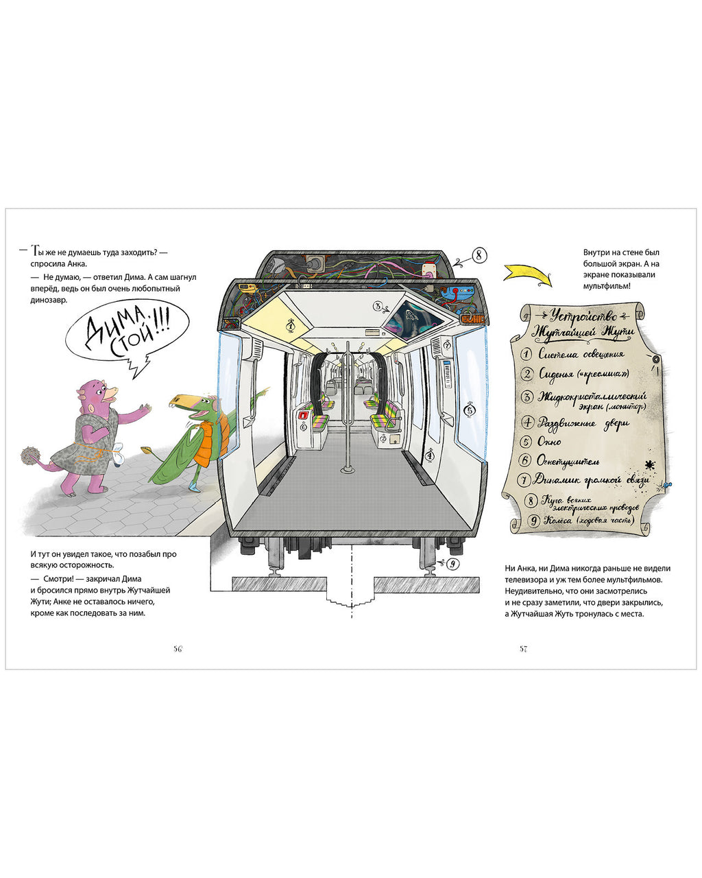 Удивительные красочные и детализированные иллюстрации этой Clever книги превращают ее в виммельбух — картинки хочется разглядывать снова и снова. Юмор и легкость текста известного писателя Алексея Лисаченко понравятся школьникам и подросткам, читающим интересные книги, книги детские с закрученным сюжетом, книги для детей и подростков о расследованиях и серию про динозавров-детективов.
