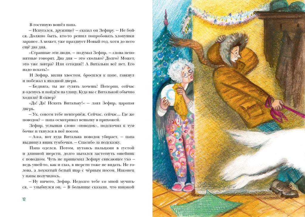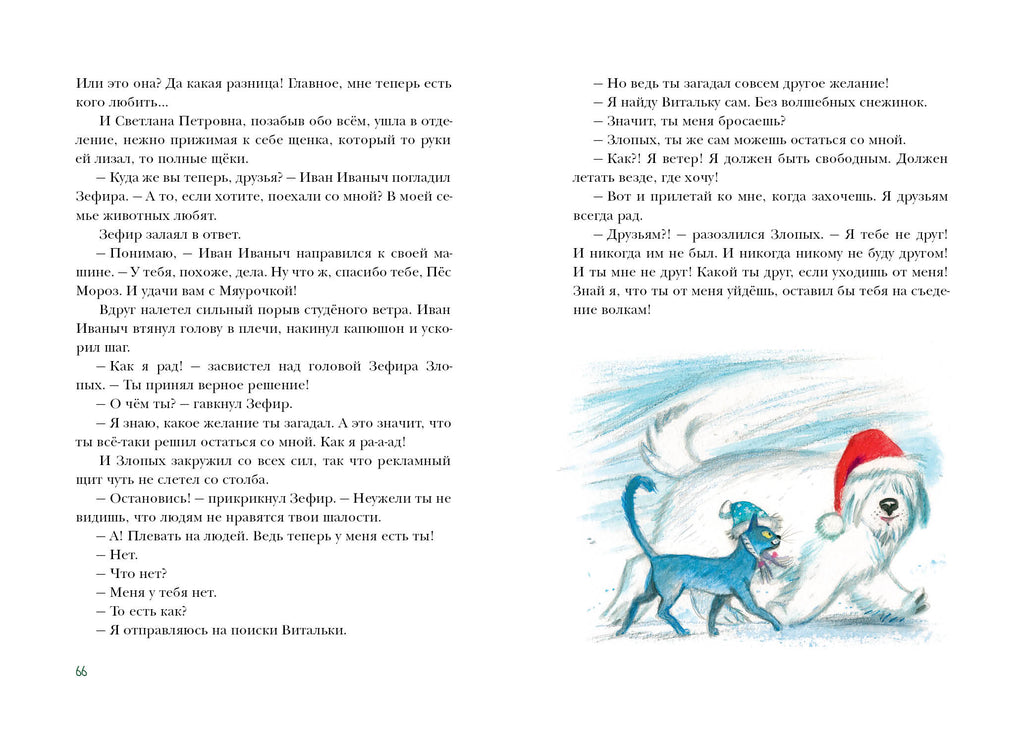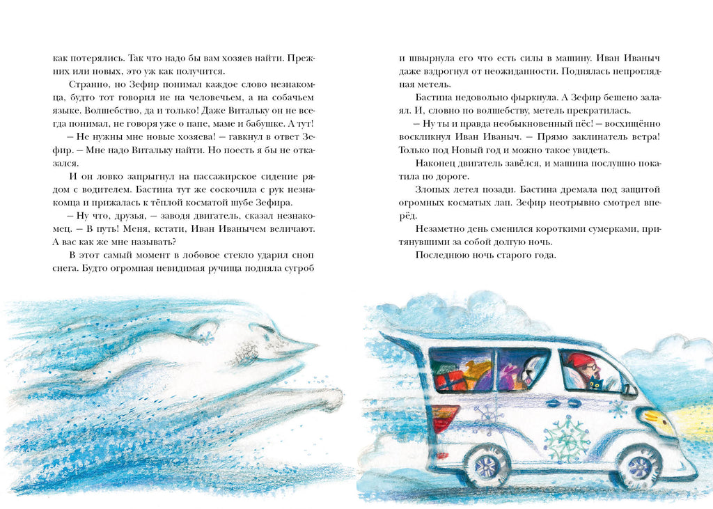 Перед самым Новым годом мальчик Виталька, хозяин пса Зефира, попал в больницу. Зефир очень тосковал и решил во что бы то ни стало отыскать друга. Утром на прогулке он учуял от одной из машин знакомый запах - так пахло от тех, кто забирал Витальку! Зефир со всех лап помчался за машиной, но вдруг сильный порыв ледяного ветра сбил его с ног и закружил в воздухе... Так начались невероятные приключения Зефира: его ждало знакомство с северным ветром Злопыхом, капризной кошкой Бастиной и добрым водителем микроавтобуса Иваном Ивановичем, который вёз подарки больным детям. Вместе с ним Зефир и Бастина сумели пробраться в больницу и даже сотворили настоящее новогоднее чудо! Вот только с Виталькой они разминулись - мальчика уже выписали домой. Что же делать? Сумеют ли друзья снова встретиться - тем более что храбрый Зефир неожиданно угодил в большую беду…