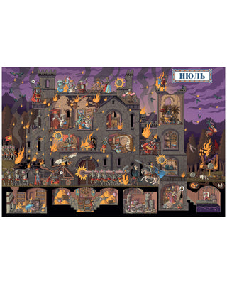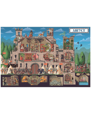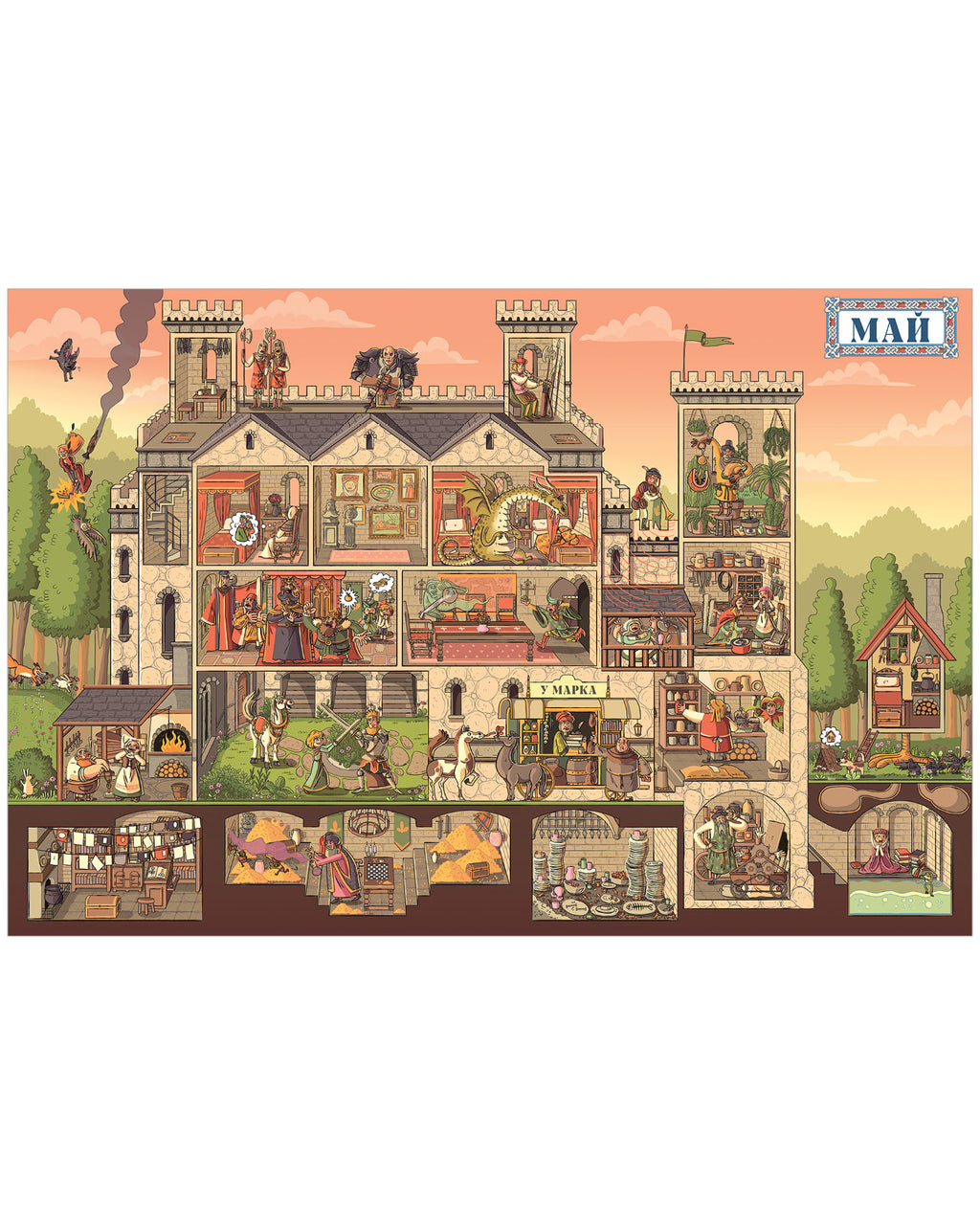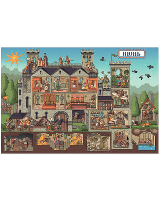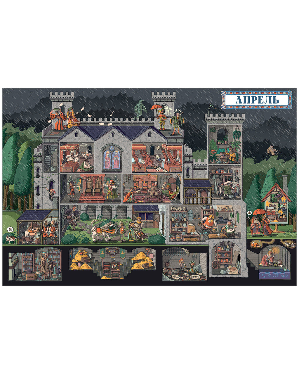 «Год в замке» — это книга-виммельбух о временах года в одной волшебной стране. Каждый из 12 разворотов рассказывает, как живут и чем занимаются обитатели королевского замка в том или ином месяце. Внимательно рассматривайте картинки и шаг за шагом распутывайте цепочку таинственных событий, в которых не обошлось без героя другой книги автора — «Драконы. Факты, слухи и легенды».