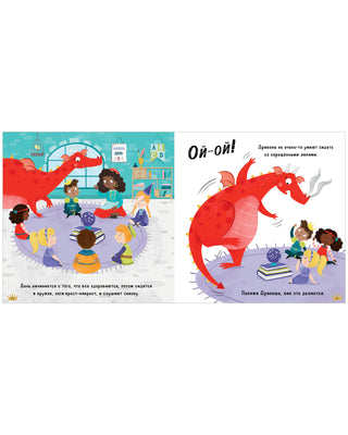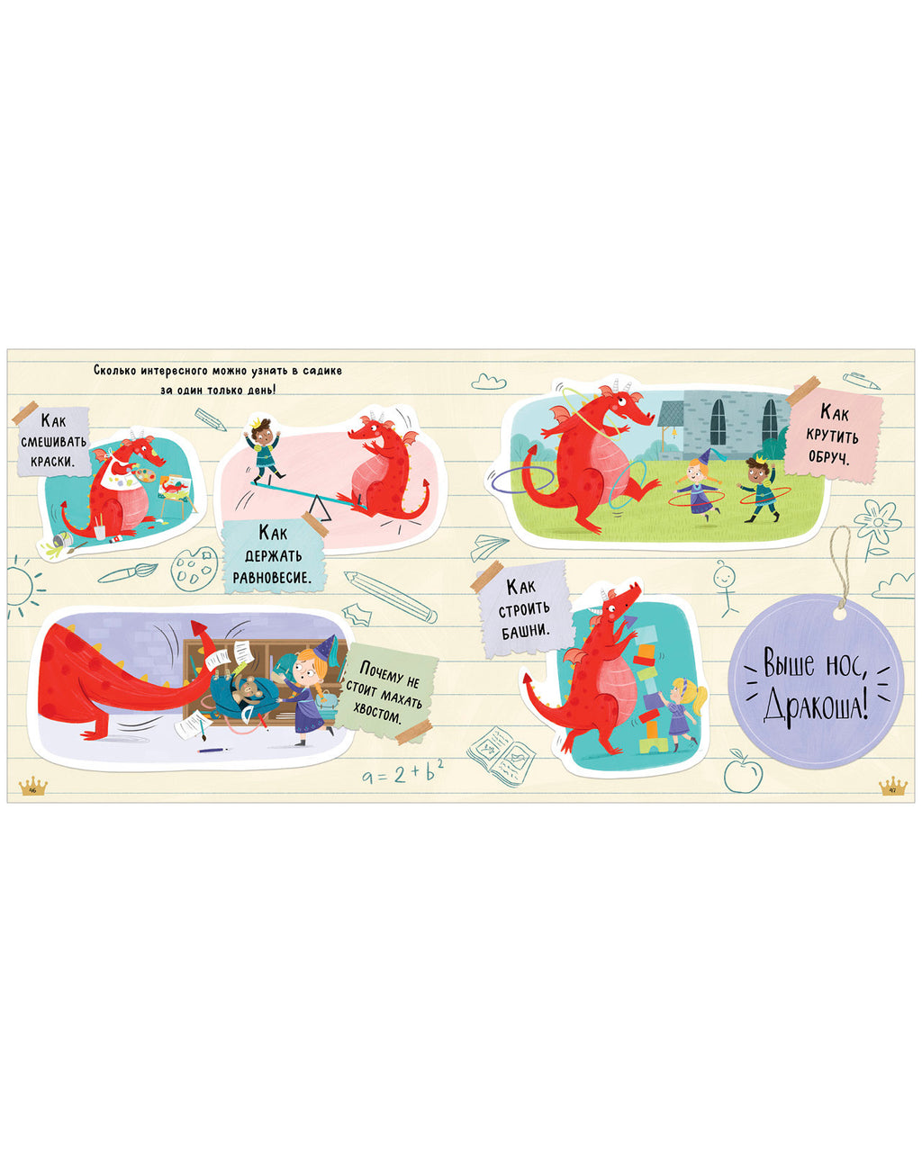 В текст каждой истории вплетены интерактивные задания, которые помогают ребенку поучаствовать в сюжете. В «Спи, Дракоша, баю-бай!» малыш будет убаюкивать Дракошу колыбельной и гладить ее по спинке, в «Не бойся, Дракоша!» — помогать ей весело провести первый день в детском саду, а в «Скажи правду, Дракоша!» подсказывать, как извиниться перед друзьями.