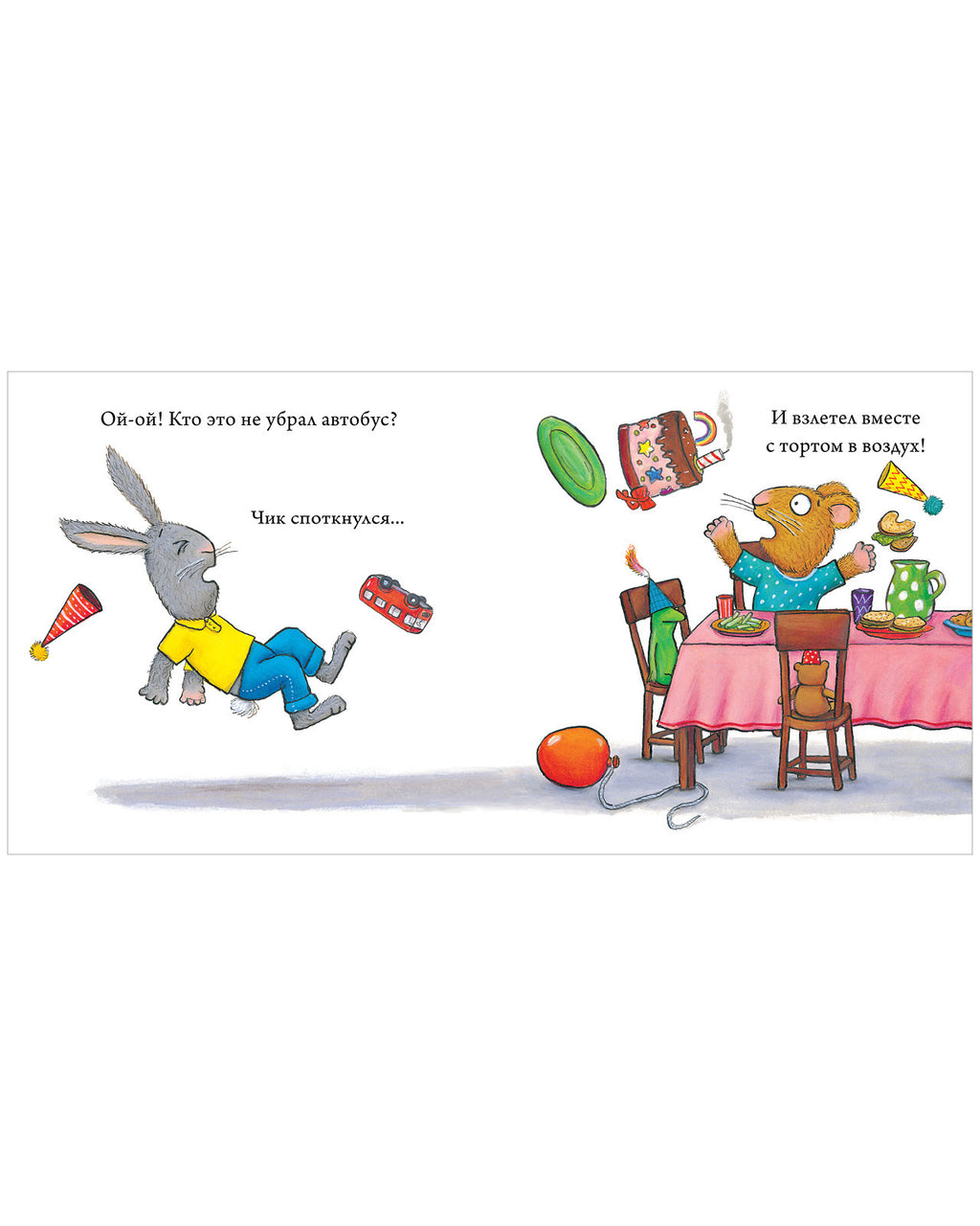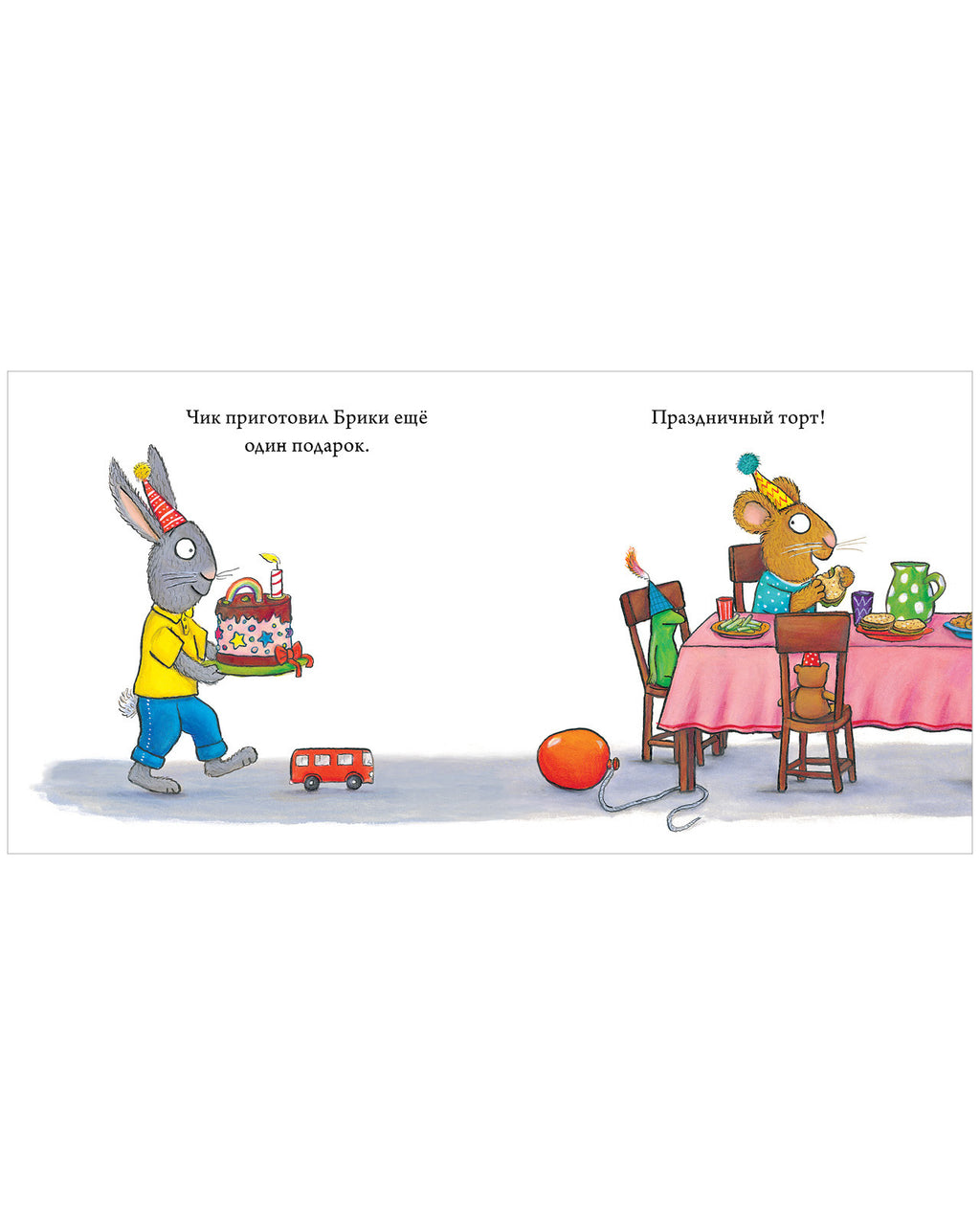 Сегодня у Брики день рождения. Чик приготовил для неё красивый торт, но, когда нёс его к праздничному столу, поскользнулся и уронил. Вот беда! Как же всё исправить? У Чика есть одна идея.