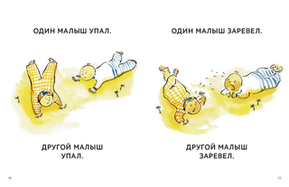 В первой истории самые длинные слова состоят всего из трех букв. Постепенно сложность рассказов в книге повышается. В заключительных историях предложения становятся длиннее, а в некоторых словах может быть до семи букв.