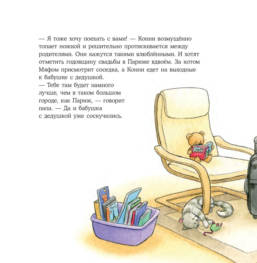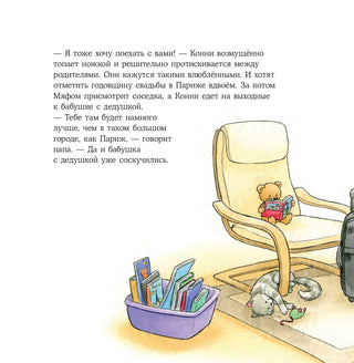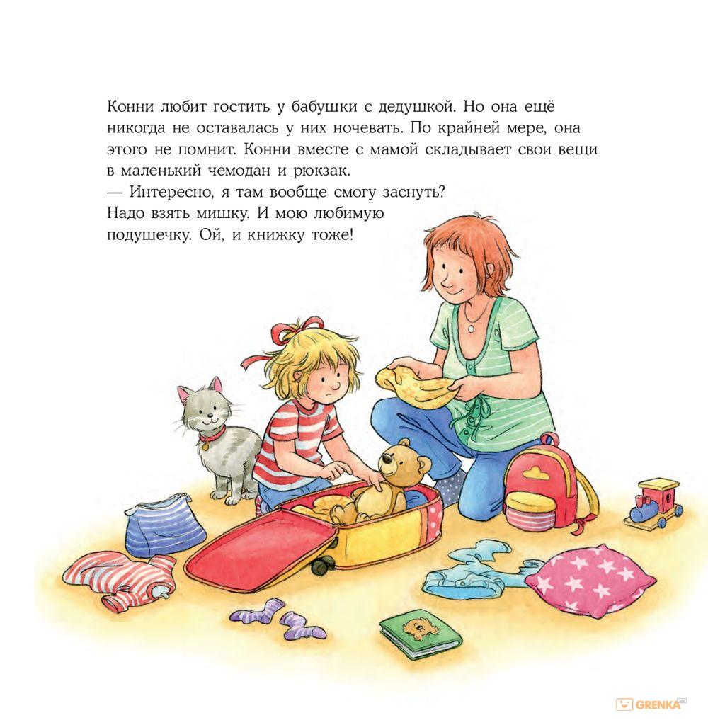 Бывает, что родителям надо куда-то уехать без детей. Тогда на помощь приходят бабушки и дедушки. Вот и Конни отправляется в гости к своим. И не просто на пару часов, а с ночевкой, на все выходные! Эта добрая история покажет малышу, что с бабушкой ничего не страшно, а дедушка знает так много интересных игр, что заскучать не получится.