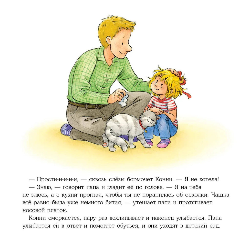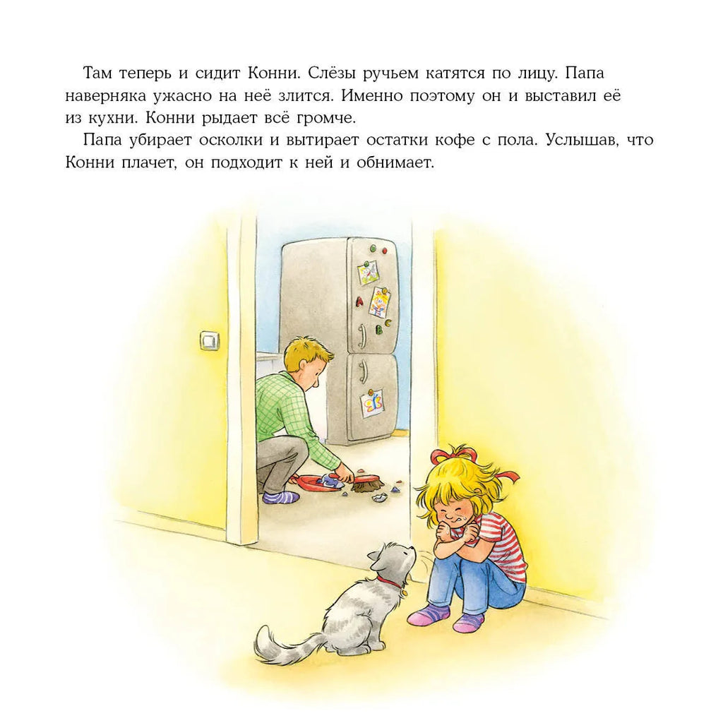 У Конни день не задался с самого утра: разбилась папина чашка, мороженое упало прямо в лужу, кот подрал любимого плюшевого мишку. Кто угодно бы расстроился в такой ситуации. Но Конни недолго унывала, потому что родители всегда рядом и готовы были ее выслушать, утешить и помочь в решении проблемы.